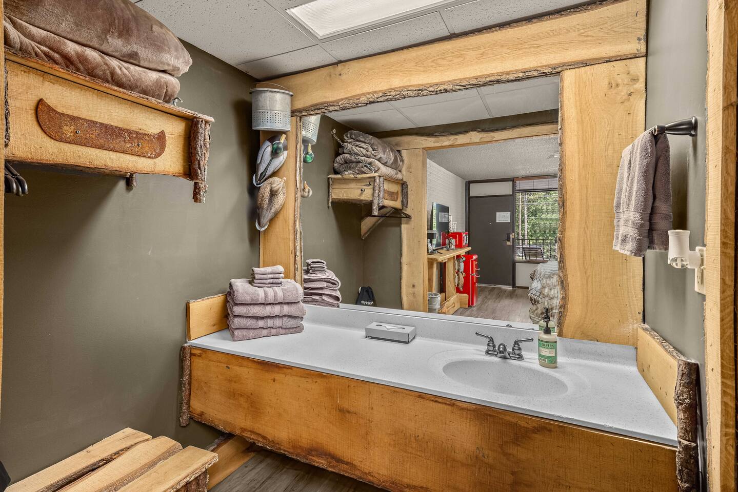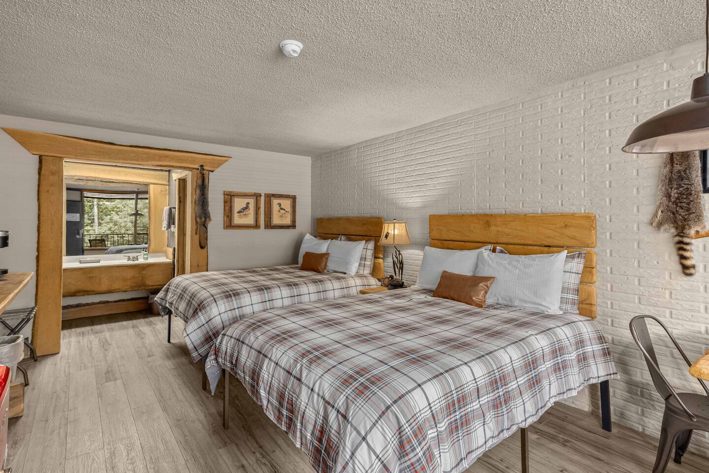 This lodge style Airbnb motel is the perfect mix of comfort, vintage style, and rustic touches. A popular stop for mountain bikers, motorcyclists, and adventure seekers! 2 mi. from HISTORIC DOWNTOWN Eureka Springs 4 mi. to Thorncrown Chapel 6 mi. to Lake Leatherwood 12 mi to Beaver Dam KEY FEATURES: ☀ 2 Plush Queen-sized Beds ☀ 50” Roku TV ☀ Salt Water Pool ☀ Fire Pit & Covered Pavilion ☀ Eureka Springs Trolley Stop ☀ Ziplining, Canoe & Kayak Rentals Nearby