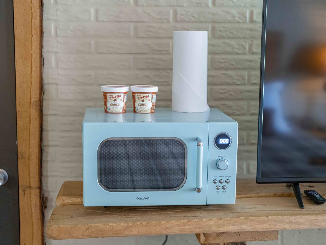 Room 306 is a studio style, front, second-level unit that requires a walk up a short flight of stairs: • Microwave & Minifridge • Keurig coffee maker w/ locally roasted coffee, creamer, & sugar • 2 Mountain Valley Spring Waters & Bob’s Oatmeal Cups • Covered table w/ 2 chairs outside your room • White noise maker for sleeping • Bedside USB phone/device charger. • Guests may use the Roku TV to access their own personal steaming platforms. THE BUILDING & COMMON AREAS: • Saltwater Pool • Fire Pit • Covered Pavilion • Ice machine & water, soda vending machine • Onsite Parking • Pet relief station