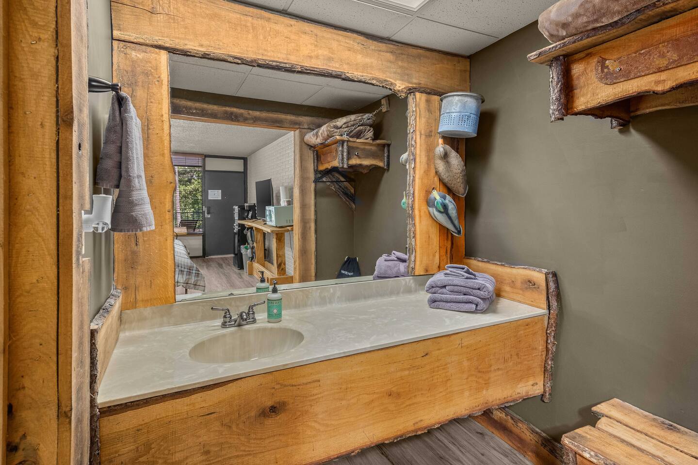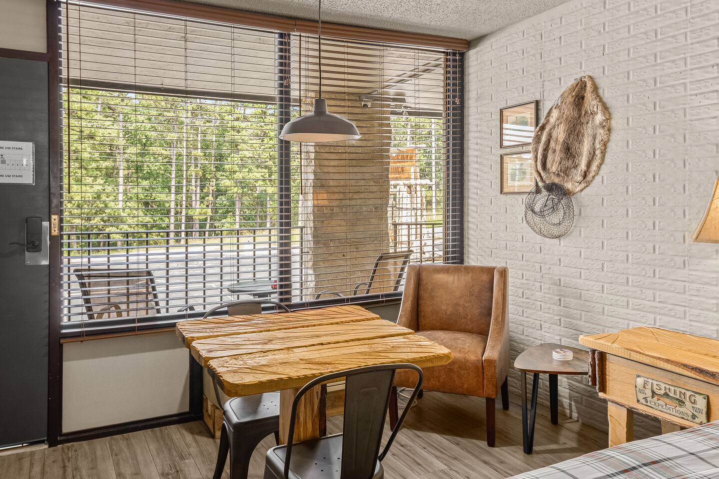 This lodge style Airbnb motel is the perfect mix of comfort, vintage style, and rustic touches. A popular stop for mountain bikers, motorcyclists, and adventure seekers! 2 mi. from HISTORIC DOWNTOWN Eureka Springs 4 mi. to Thorncrown Chapel 6 mi. to Lake Leatherwood 12 mi to Beaver Dam KEY FEATURES: ☀ Plush King-sized Bed ☀ 50” Roku TV ☀ Salt Water Pool ☀ Fire Pit & Covered Pavilion ☀ Eureka Springs Trolley Stop ☀ Ziplining, Canoe & Kayak Rentals Nearby