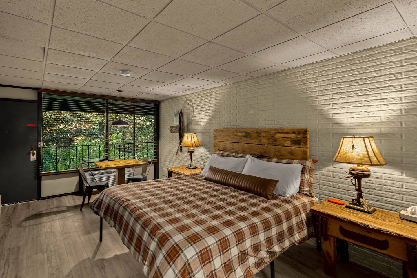 This lodge style Airbnb motel is the perfect mix of comfort, vintage style, and rustic touches. A popular stop for mountain bikers, motorcyclists, and adventure seekers! 2 mi. from HISTORIC DOWNTOWN Eureka Springs 4 mi. to Thorncrown Chapel 6 mi. to Lake Leatherwood 12 mi to Beaver Dam KEY FEATURES: ☀ Plush King-sized Bed ☀ 50” Roku TV w/ HULU+ ☀ Salt Water Pool ☀ Fire Pit & Covered Pavilion ☀ Eureka Springs Trolley Stop ☀ Ziplining, Canoe & Kayak Rentals Nearby