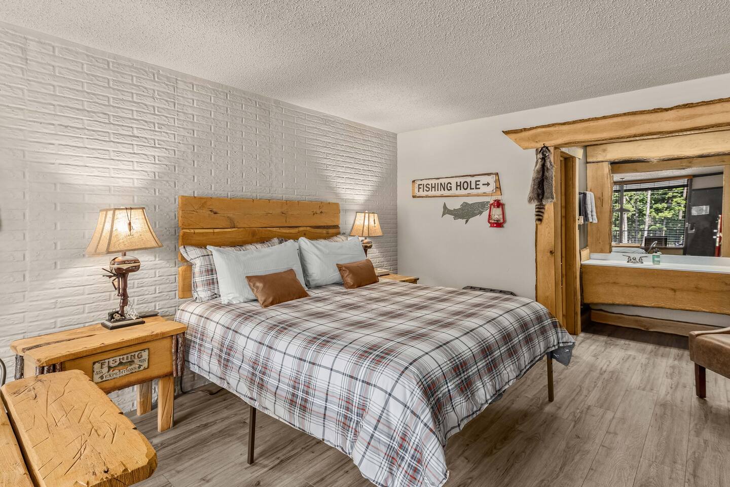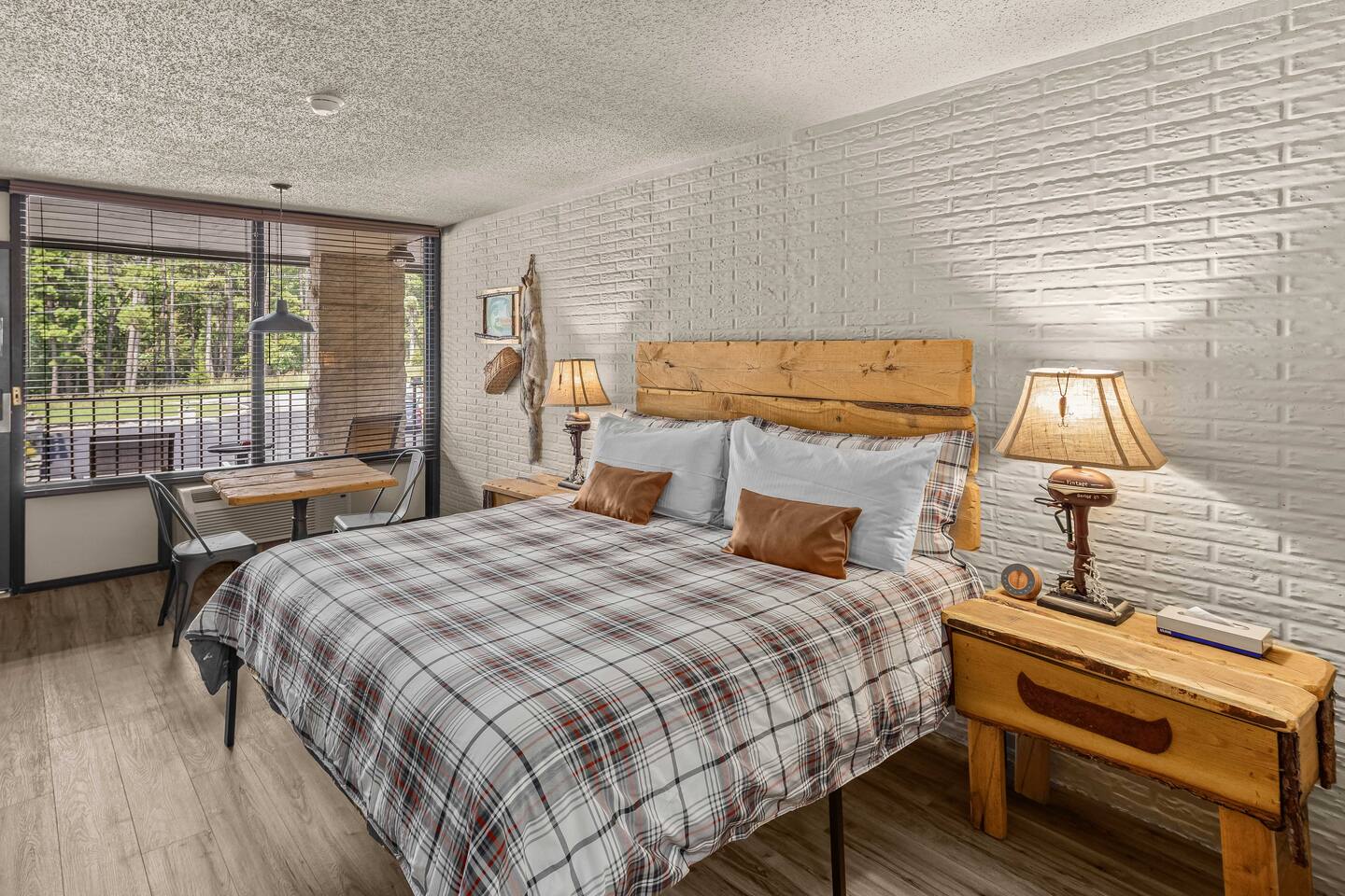 This lodge style Airbnb motel is the perfect mix of comfort, vintage style, and rustic touches. A popular stop for mountain bikers, motorcyclists, and adventure seekers! 2 mi. from HISTORIC DOWNTOWN Eureka Springs 4 mi. to Thorncrown Chapel 6 mi. to Lake Leatherwood 12 mi to Beaver Dam KEY FEATURES: ☀ Plush King-sized Bed ☀ 50” Roku TV ☀ Salt Water Pool ☀ Fire Pit & Covered Pavilion ☀ Eureka Springs Trolley Stop ☀ Ziplining, Canoe & Kayak Rentals Nearby