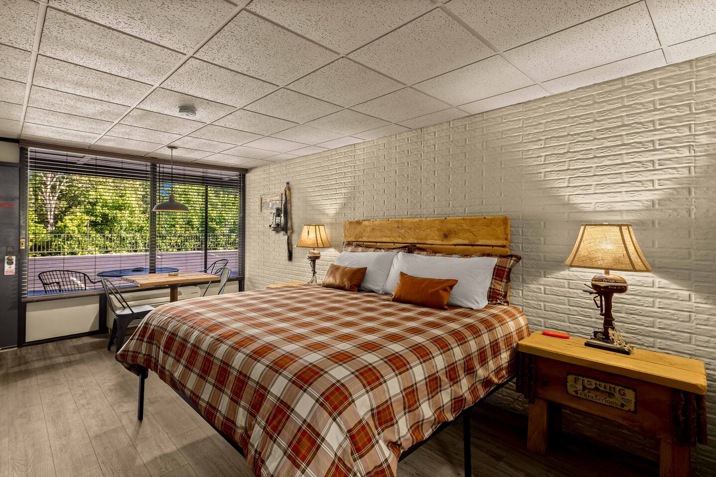 This lodge style Airbnb motel is the perfect mix of comfort, vintage style, and rustic touches. A popular stop for mountain bikers, motorcyclists, and adventure seekers! 2 mi. from HISTORIC DOWNTOWN Eureka Springs 4 mi. to Thorncrown Chapel 6 mi. to Lake Leatherwood 12 mi to Beaver Dam KEY FEATURES: ☀ Plush King-sized Bed ☀ 50” Roku TV w/ HULU+ ☀ Salt Water Pool ☀ Fire Pit & Covered Pavilion ☀ Eureka Springs Trolley Stop ☀ Ziplining, Canoe & Kayak Rentals Nearby