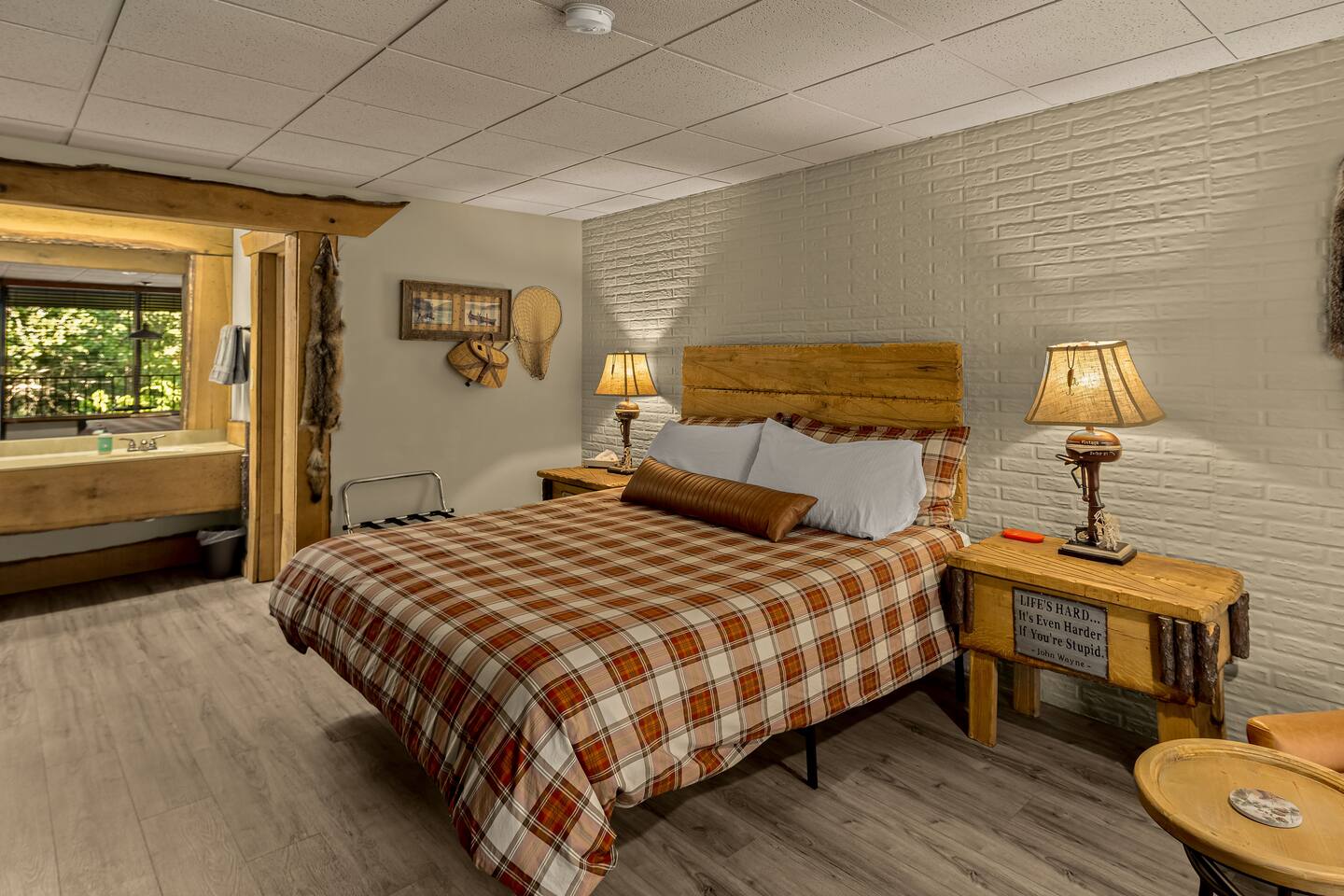 This lodge style Airbnb motel is the perfect mix of comfort, vintage style, and rustic touches. A popular stop for mountain bikers, motorcyclists, and adventure seekers! 2 mi. from HISTORIC DOWNTOWN Eureka Springs 4 mi. to Thorncrown Chapel 6 mi. to Lake Leatherwood 12 mi to Beaver Dam KEY FEATURES: ☀ Plush King-sized Bed ☀ 50” Roku TV w/ HULU+ ☀ Salt Water Pool ☀ Fire Pit & Covered Pavilion ☀ Eureka Springs Trolley Stop ☀ Ziplining, Canoe & Kayak Rentals Nearby