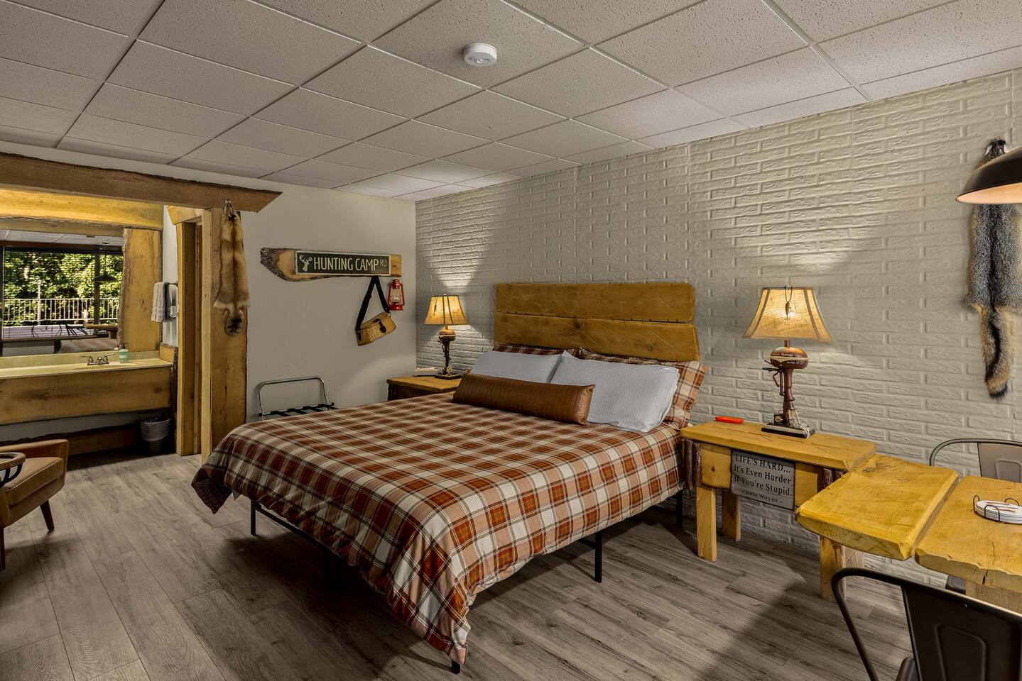 This lodge style Airbnb motel is the perfect mix of comfort, vintage style, and rustic touches. A popular stop for mountain bikers, motorcyclists, and adventure seekers! 2 mi. from HISTORIC DOWNTOWN Eureka Springs 4 mi. to Thorncrown Chapel 6 mi. to Lake Leatherwood 12 mi to Beaver Dam KEY FEATURES: ☀ Plush King-sized Bed ☀ 50” Roku TV w/ HULU+ ☀ Salt Water Pool ☀ Fire Pit & Covered Pavilion ☀ Eureka Springs Trolley Stop ☀ Ziplining, Canoe & Kayak Rentals Nearby