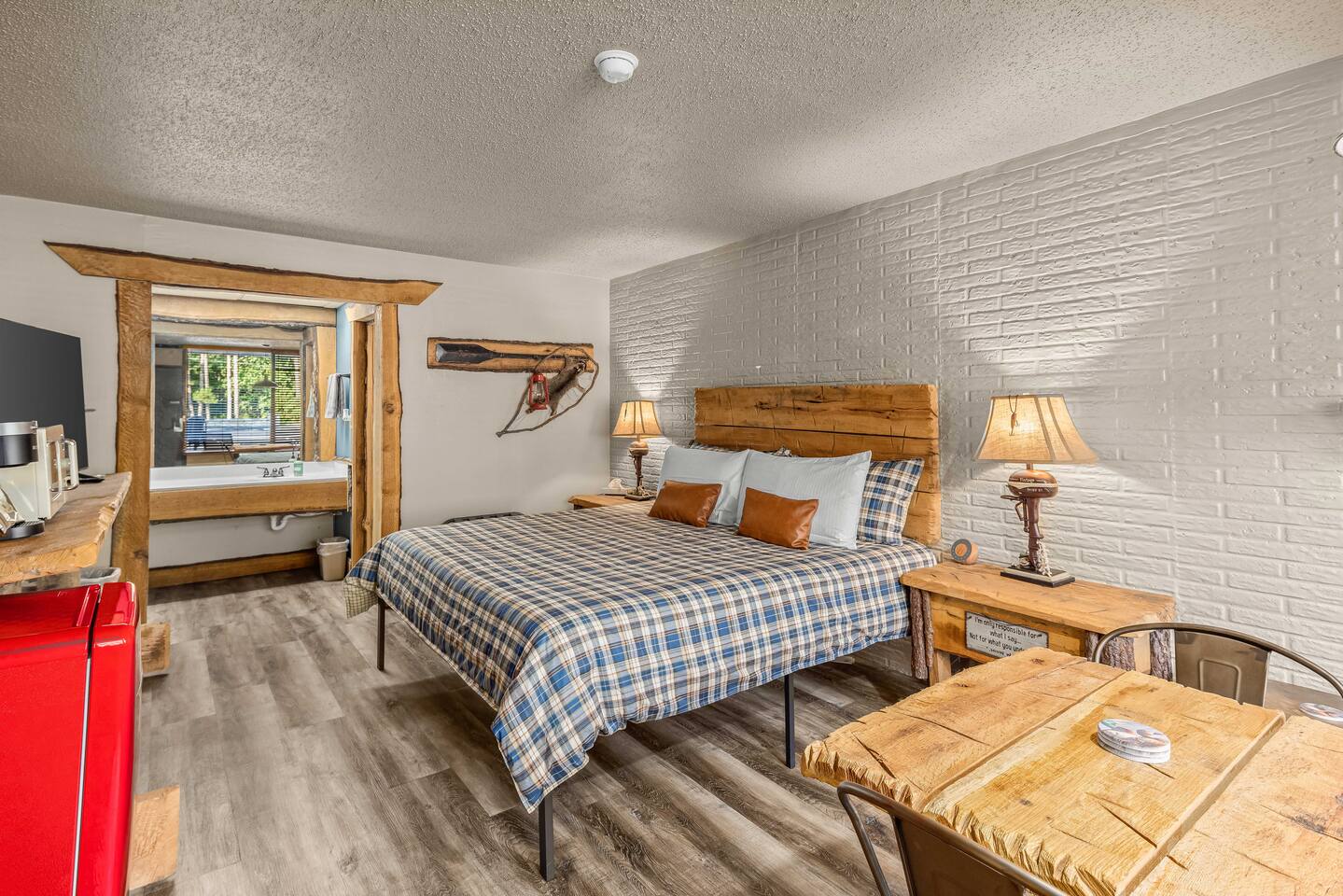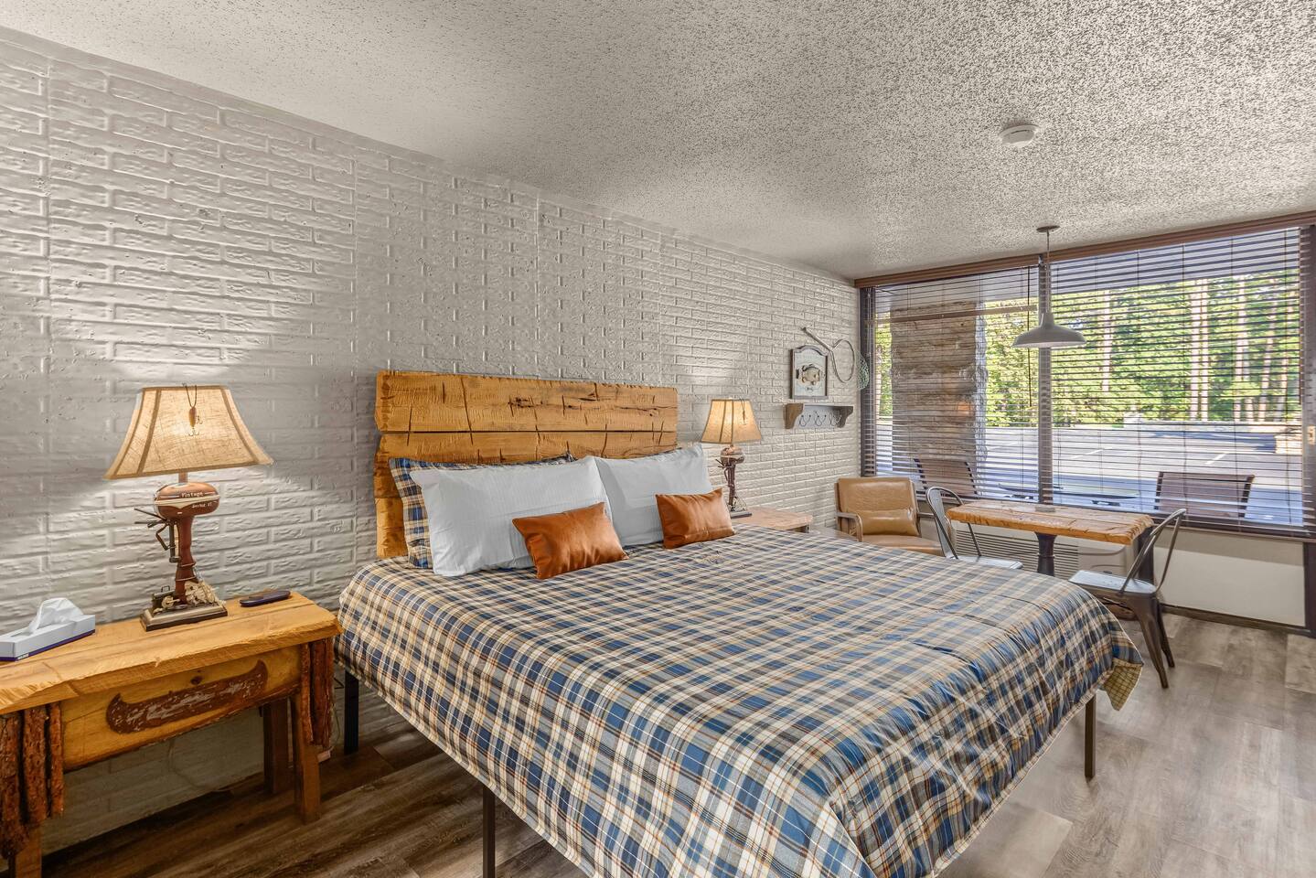 This lodge style Airbnb motel is the perfect mix of comfort, vintage style, and rustic touches. A popular stop for mountain bikers, motorcyclists, and adventure seekers! 2 mi. from HISTORIC DOWNTOWN Eureka Springs 4 mi. to Thorncrown Chapel 6 mi. to Lake Leatherwood 12 mi to Beaver Dam KEY FEATURES: ☀ Plush King-sized Bed ☀ 50” Roku TV ☀ Salt Water Pool ☀ Fire Pit & Covered Pavilion ☀ Eureka Springs Trolley Stop ☀ Ziplining, Canoe & Kayak Rentals Nearby