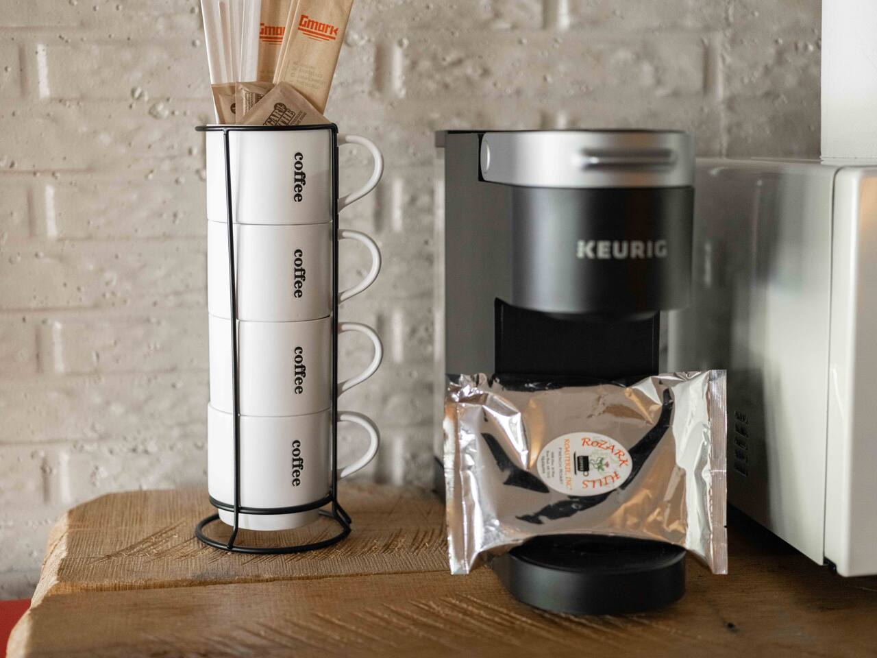 Unit 203 is a studio style ground floor unit on the front side of the building. • Dining table w/ 2 chairs • Microwave & Minifridge • Keurig coffee maker w/ locally roasted coffee, creamer, & sugar • 2 Mountain Valley Spring Waters & Bob’s Oatmeal Cups • Covered table w/ 2 chairs outside your room • White noise maker for sleeping • Bedside USB phone/device charger. • Guests may use the Roku TV to access their own personal steaming platforms. THE BUILDING & COMMON AREAS: • Saltwater Pool • Fire Pit • Covered Pavilion • Ice machine & water, soda vending machine • Onsite Parking • Pet relief station