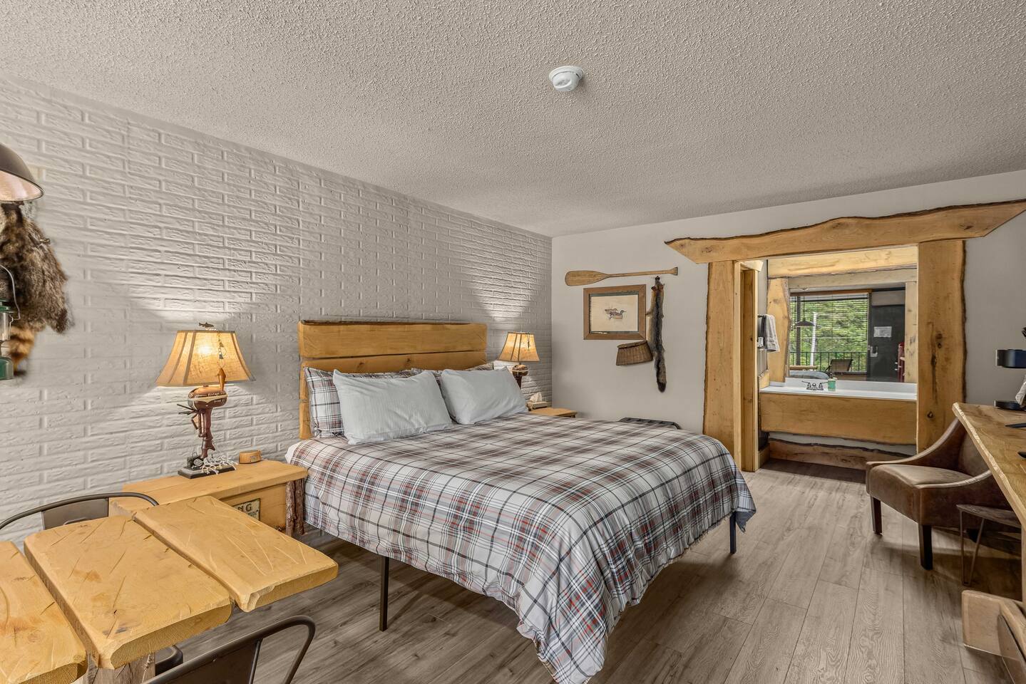 This lodge style Airbnb motel is the perfect mix of comfort, vintage style, and rustic touches. A popular stop for mountain bikers, motorcyclists, and adventure seekers! 2 mi. from HISTORIC DOWNTOWN Eureka Springs 4 mi. to Thorncrown Chapel 6 mi. to Lake Leatherwood 12 mi to Beaver Dam KEY FEATURES: ☀ Plush King-sized Bed ☀ 50” Roku TV ☀ Salt Water Pool ☀ Fire Pit & Covered Pavilion ☀ Eureka Springs Trolley Stop ☀ Ziplining, Canoe & Kayak Rentals Nearby